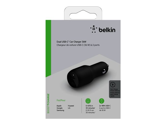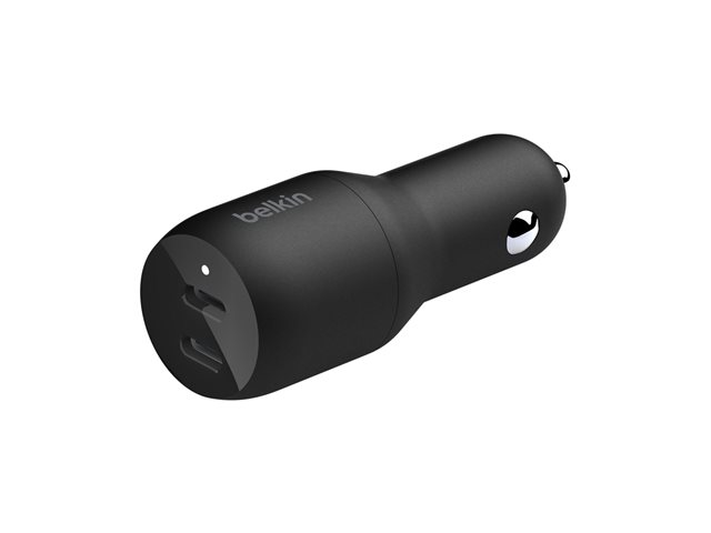 Belkin BoostCharge Dual Charger - Strömadapter för bil - 36 Watt - PD - 2 utdatakontakter (24 pin USB-C) - svart
