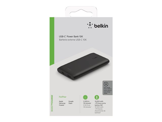 Belkin BoostCharge - Power bank - 10000 mAh - 18 Watt - Fast Charge, PD - 2 utdatakontakter (USB, USB-C) - svart