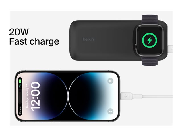 Belkin BoostCharge Pro - Trådlös powerbank - 10000 mAh - 20 Watt - PD 3.0, Fast Charge (magnetisk, USB-C) - på kabel: USB-C - svart