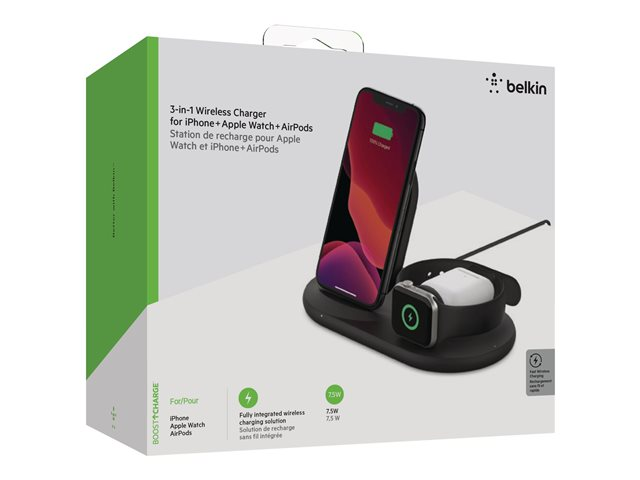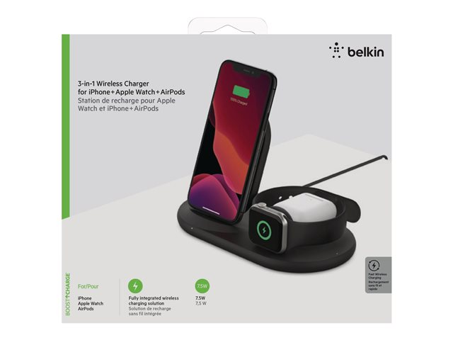 Belkin BoostCharge - Trådlöst laddställ - 7.5 Watt - svart - för Apple AirPods; AirPods Pro; iPhone 11, 12, 7, 8, SE, X, XR, XS, XS Max; Watch