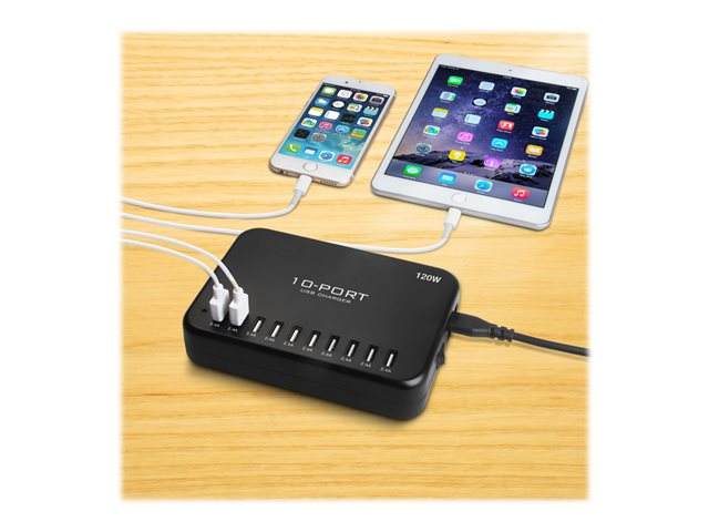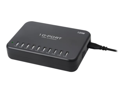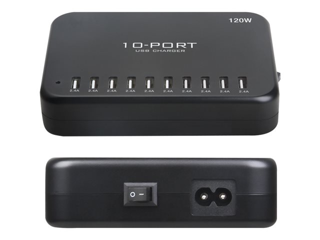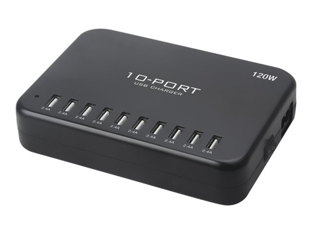 Insmat - Strömadapter - 120 Watt - 2.4 A - 10 utdatakontakter (10 x 4-stifts USB typ A) - svart