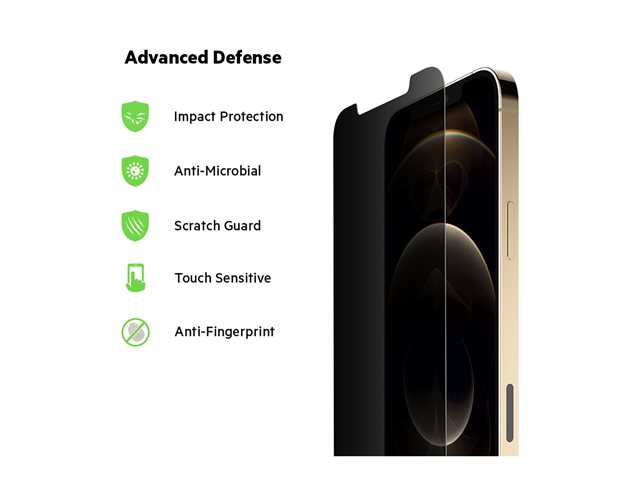 Belkin ScreenForce - Skärmskydd för mobiltelefon - med sekretessfilter - 2-vägs - för Apple iPhone 12 Pro Max