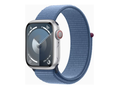 Apple Watch Series 9 (GPS + Cellular) - 41 mm - silveraluminium - smart klocka med sportögla - mjukt nylon i dubbla lager - winter blue - 64 GB - Wi-Fi, Bluetooth, UWB, LTE - 4G - 32.1 g