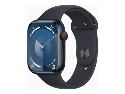 Apple Watch Series 9 (GPS + Cellular) - 45 mm - midnattsaluminium - smart klocka med sportband - fluoroelastomer - midnatt - bandstorlek: S/M - 64 GB - Wi-Fi, Bluetooth, UWB, LTE - 4G - 39 g