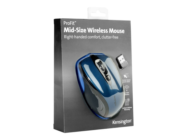 Kensington Pro Fit Mid-Size - Mus - högerhänt - optisk - trådlös - 2.4 GHz - trådlös USB-mottagare - safirblå