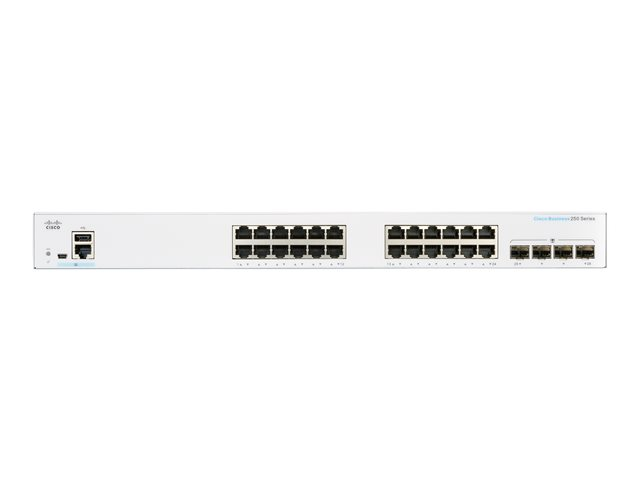 Cisco Business 250 Series CBS250-24PP-4G - Switch - L3 - smart - 24 x 10/100/1000 (PoE+) + 4 x Gigabit SFP - rackmonterbar - PoE+ (100 W) CBS250-24PP-4G-EU