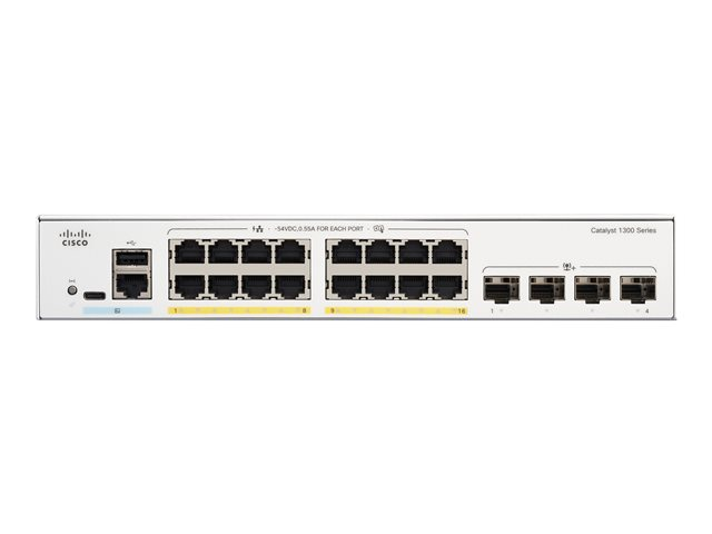 Cisco Catalyst 1300-16P-4X - Switch - L3 - Administrerad - 16 x 10/100/1000 (PoE+) + 4 x 10Gb Ethernet SFP+ - rackmonterbar - PoE+ (120 W) C1300-16P-4X