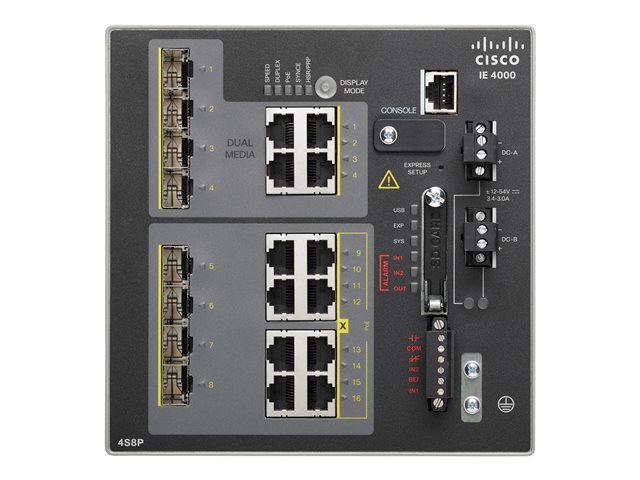 Cisco Industrial Ethernet 4000 Series - Switch - Administrerad - 8 x kombo Gigabit SFP + 4 x 10/100/1000 (PoE+) - DIN-skenmonterbar - PoE+ - DC power - TAA-kompatibel