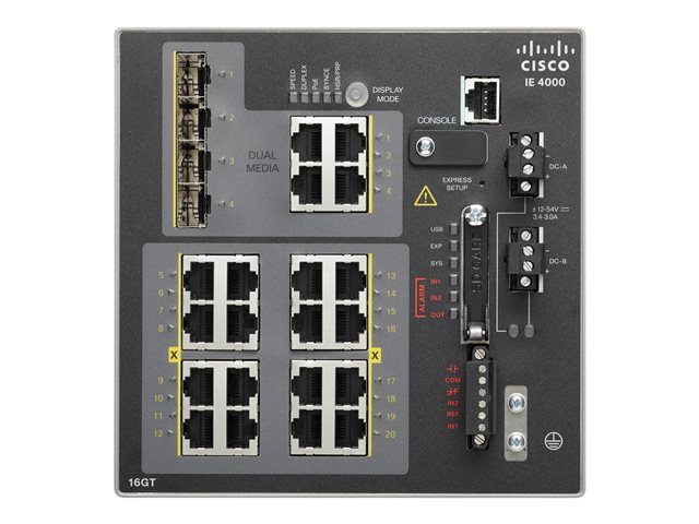 | Gränssnitt | 16 x 1000Base-T RJ-45 4 x 1000Base-T RJ-45 upplänk 4 x SFP upplänk 1 x mini-USB Type B 1 x konsol RJ-45 |