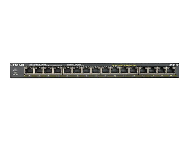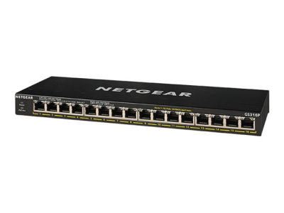 NETGEAR GS316P - Switch - ohanterad - 16 x 10/100/1000 (PoE+) - skrivbordsmodell, väggmonterbar - PoE+ (115 W)