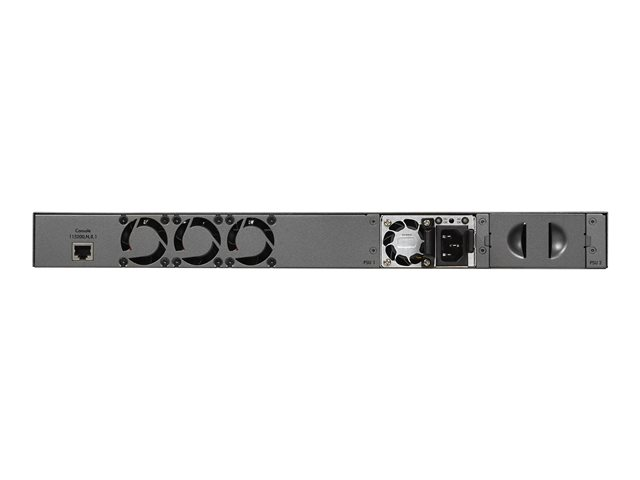 | Gränssnitt | 2 x 10GBase-T RJ-45 2 x 10GBase-X SFP+ 1 x hantering (Gigabit LAN) RJ-45 1 x seriell (RS-232) RJ-45 1 x konsol (mini-USB) 1 x USB Type A 24 x 1000Base-T RJ-45 |