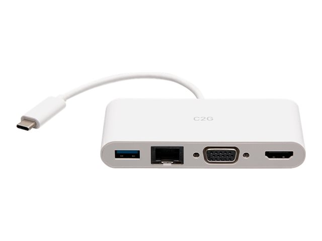 C2G USB C to HDMI, VGA, USB A & RJ45 Adapter - 4K 30Hz - White - Dockningsstation - USB-C / Thunderbolt 3 - VGA, HDMI - 1GbE