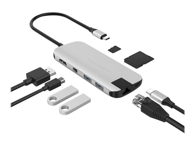 HyperDrive Pro 8-in-2 Hub - Dockningsstation - USB-C x 2 - HDMI, Mini DP